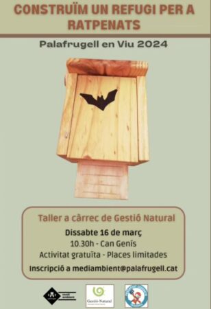 Construcció i col·locació de caixes niu per ratpenats a Palafrugell dissabte 16 de març 2024 10:30h fins 12:30h Can Genís Palafrugell Formació Voluntariat Associació Gestió Natural Contacte: mediambient@palafrugell.cat Informació Ubicació Vine dissabte 16 a les 10.30 h a construir i penjar caixes niu per ratpenat a Can Genís Vols aprendre sobre Ratpenats i construir caixes-refugi per la seva protecció?? Llavors t’esperem a Palafrugell aquest dissabte! Taller Gratuït, 16/03, de 10,30 a 12,30 h Compartir: Can Genís carrer Progrés, 15 Palafrugell Baix Empordà