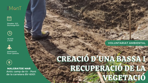 Els 12 i 13 de novembre impermeabilitzarem la bassa, hi col·locarem un tancat i plantarem les espècies pròpies del seu l'entorn.