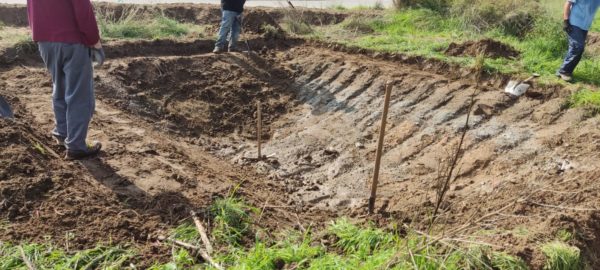 Un mes després de preparar la topografia del terreny, d’eliminar les espècies exòtiques i de sembrar les espècie adients pels sectors més elevats al voltant de la bassa, ara toca impermeabilitzar-la, fer-hi un tancat i sembrar les espècies pròpies de l’entorn més immediat i inundable.