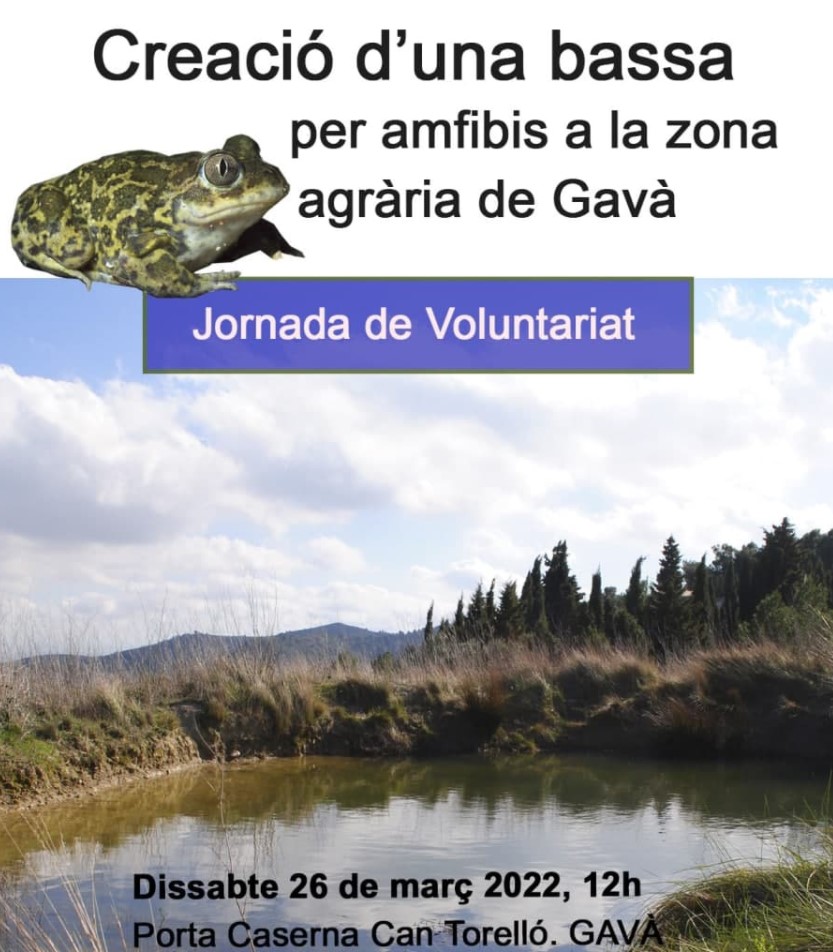 Amb motiu del Dia Mundial de l’Aigua, que és el 22 de març, el grup Les Agulles-Ecologistes en Acció del Baix Llobregat i el Garraf convida tothom a participar a una activitat de voluntariat el dissabte, 26 de març, per crear una bassa per a amfibis i fomentar així la biodiversitat a la zona agrària de Gavà.