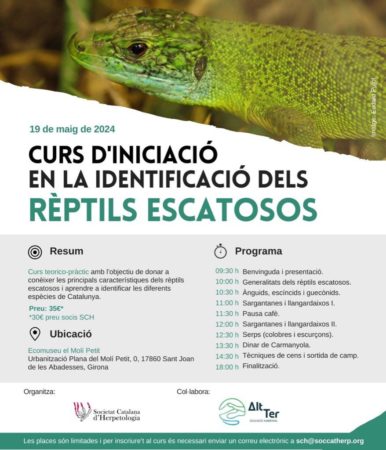 Curs teòrico-pràctic amb l’objectiu de donar a conèixer les principals característiques dels rèptils escatosos i aprendre a identificar les diferents espècies de Catalunya