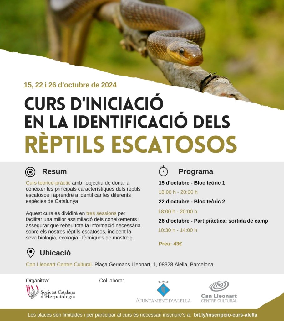 Aquest curs es dividirà en tres sessions per facilitar una millor assimilació dels coneixements i assegurar que rebeu tota la informació necessària sobre els nostres rèptils escatosos, incloent la seva biologia, ecologia i tècniques de mostreig.
