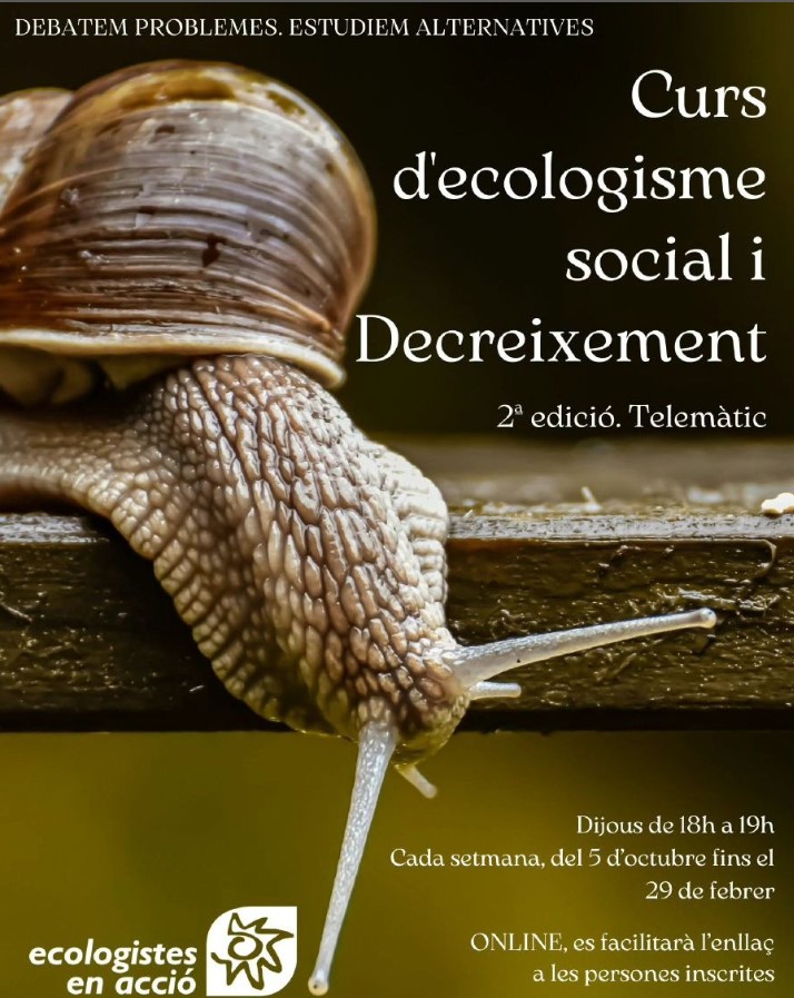 Ecologistes en Acció de Catalunya tornem a oferir el curs d’Ecologisme social i Decreixement a la tardor, i en aquesta ocasió el farem en versió telemàtica.