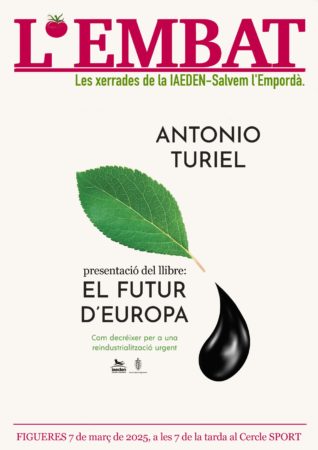 Divendres 7 de març a les 19h, presentació i debat a Figueres del llibre “El futur d’Europa. Reflexions decreixentistes per a una reindustrialització urgent”, amb l'autor del llibre, Antonio Turiel.