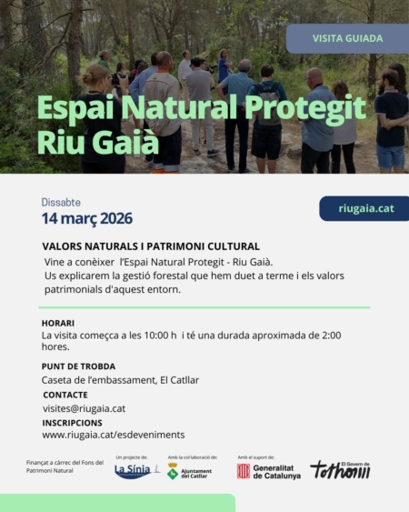 Farem un recorrecut per l’Espai Natural Protegit – Riu Gaià per explicar-vos la gestió forestal que durem a terme i els valors patrimonials d’aquest entorn.