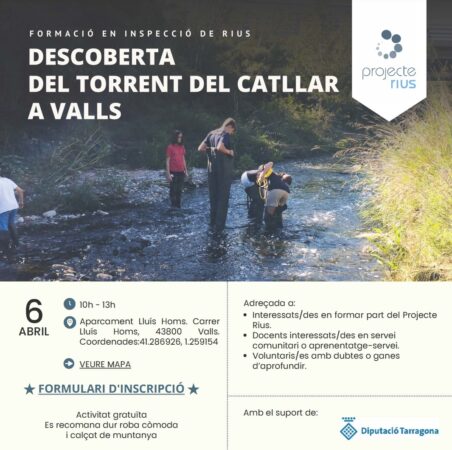El 6 d’abril ens trobarem a Valls per presentar el Projecte Rius, una iniciativa de Ciència Ciutadana en la que aprendre a esbrinar l’estat ecològic d’un riu seguint una metodologia científica. Si la cosa us engresca, vosaltres mateixos us podreu convertir el voluntaris ambiental i apadrinar un tram de riu per fer-hi seguiment.