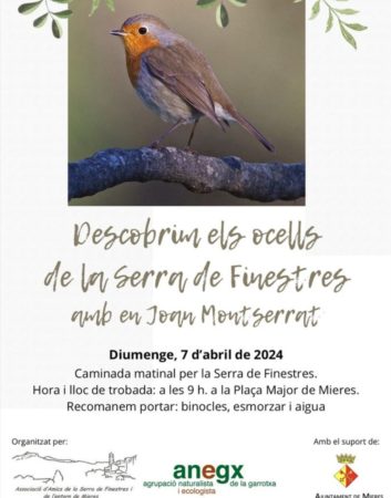 Descobrim els ocells. Caminada per la Serra de Finestres. Sortida explicada i guiada a càrrec d’en Joan Montserrat.
