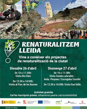 Un cap de setmana en què podrem visitar alguns dels espais ja renaturalitzats, com el Turó de la Seu Vella i el Parc de les Basses; i d’altres que estan en ple desenvolupament, com al carrer Riu Ebre o les Sendes Arbrades.