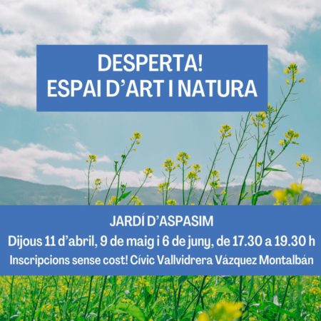 Desperta les emocions, els sentits, la creativitat, desperta a través de la natura i processos creatius col·lectius. El jardí d’Aspasim es convertirà en una espai de calma i benestar on la natura serà el fil conductor dels nostres processos creatius.