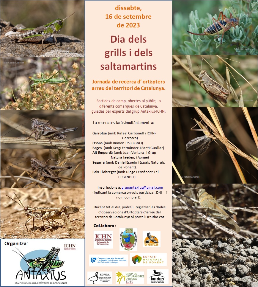 El Grup de Natura de la IAEDEN-Salvem l’Empordà i el grup Antaxius de ICHN (Institut Català d’Història Natural) han organitzat amb col·laboració amb l’APNAE una sortida nocturna amb el naturalista Joan Ventura per conèixer aquest grup de fauna tan petita però tan curiosa com són els grills i saltamartins.
