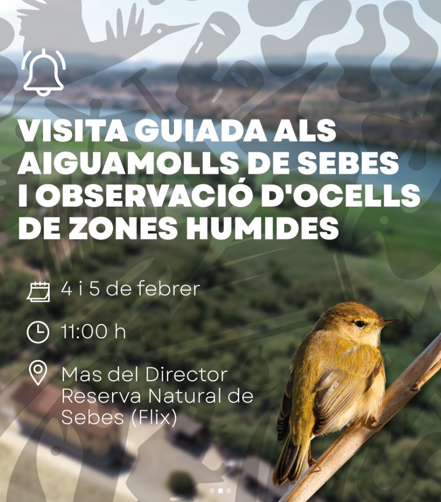 Ens trobarem al Mas del Director a les 11:00 h i, des d’allí, caminarem fins a la passera del canyissar per endinsar-nos als aiguamolls de la Reserva Natural de Sebes i descobrir-los de ben a prop ? Acabarem la sortida fent observació d’aus des dels aguaits amb prismàtics, que estaran a disposició de tots els assistents.