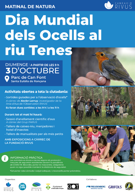 Les activitats s’iniciaran a les 9 hores, d’una banda, amb una sortida guiada per a l’observació d’ocells (amb una segona sortida prevista a les 11 hores) a càrrec de Xavier Larruy, investigador de la línia d’Aus de l’Observatori RIVUS, i de l’altra, amb la posada en marxa, per part del Grup Ornitològic del Tenes (GOT), de diferents tallers per a la construcció de caixes-niu, menjadores i hotels d’insectes, així com de manualitats per als més petits.