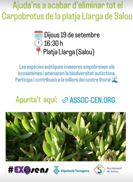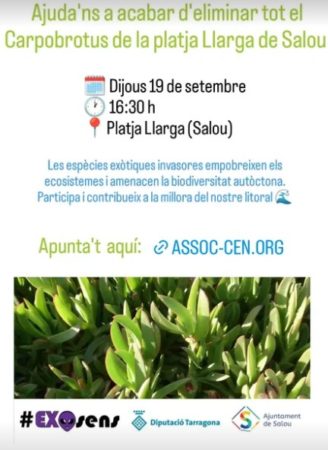 Participa en les jornades d’eliminació de plantes exòtiques a Salou! El nostre litoral es troba ple de plantes exòtiques invasores que empobreixen els ecosistemes i amenacen la biodiversitat autòctona. Per això, és vital actuar i combatre aquesta alteració!