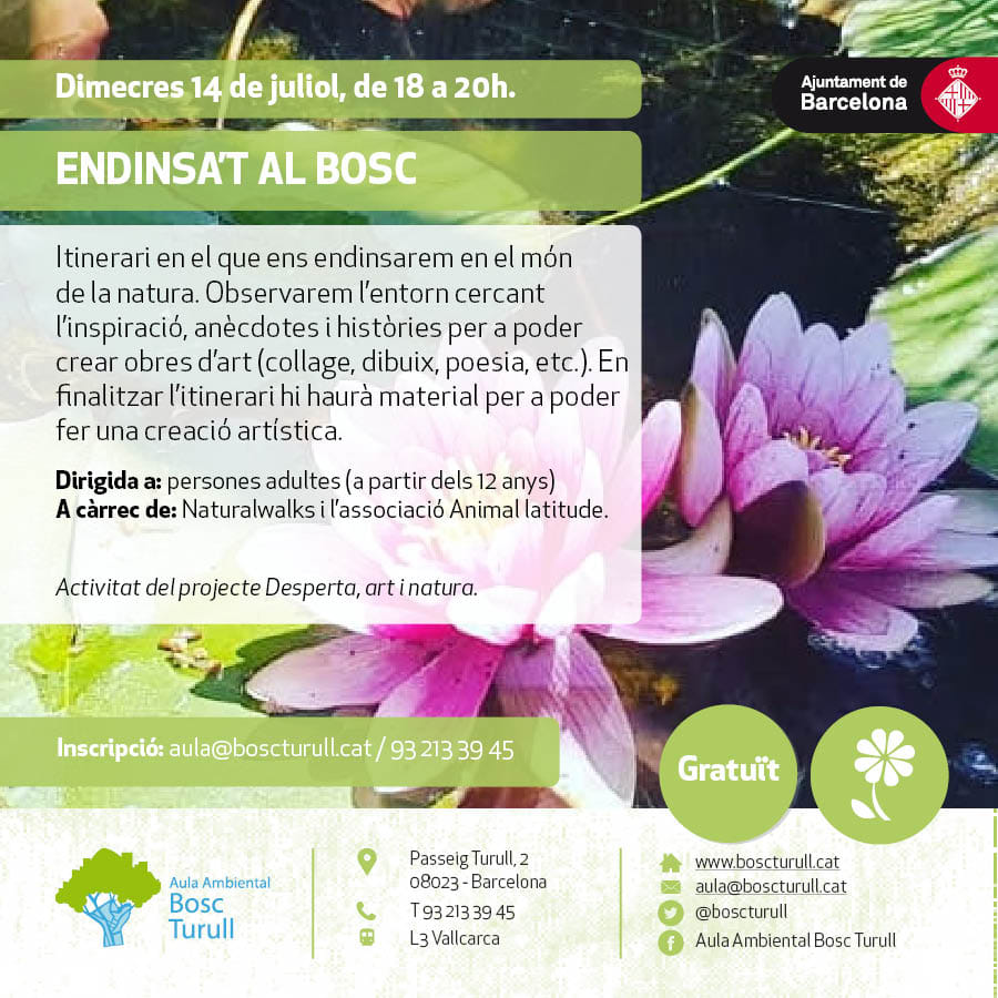 Quan finalitzis l’itinerari, si t’inspires i fas una creació, et convidem a compartir-la en un relat o fotografia del punt del mapa, i a les xarxes etiquetant a instagram a @desperta_artinatura @animal_latitude @boscturull @naturalwalks i amb l’etiqueta #desperta_artinatura #mapabarcelonamessostenible. A twitter ho podeu compartir a @animallatitude @boscturull @naturalwalks.