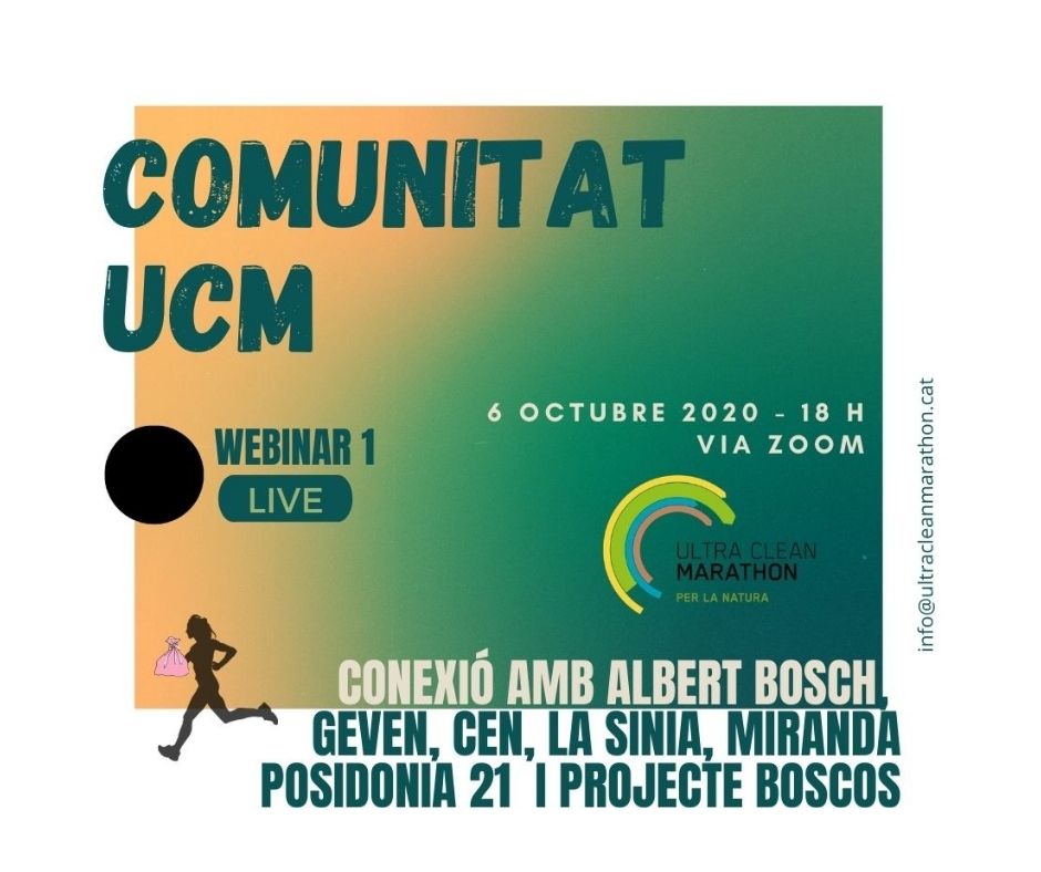 Connecta al primer entrenament online de la UCM : esport i mediambient, corredors, plogging i entitats ambientals. Dimarts 6 d'octubre a les 18 h, via zoom. Escriu-nos a info@ultracleanmarathon.cat.