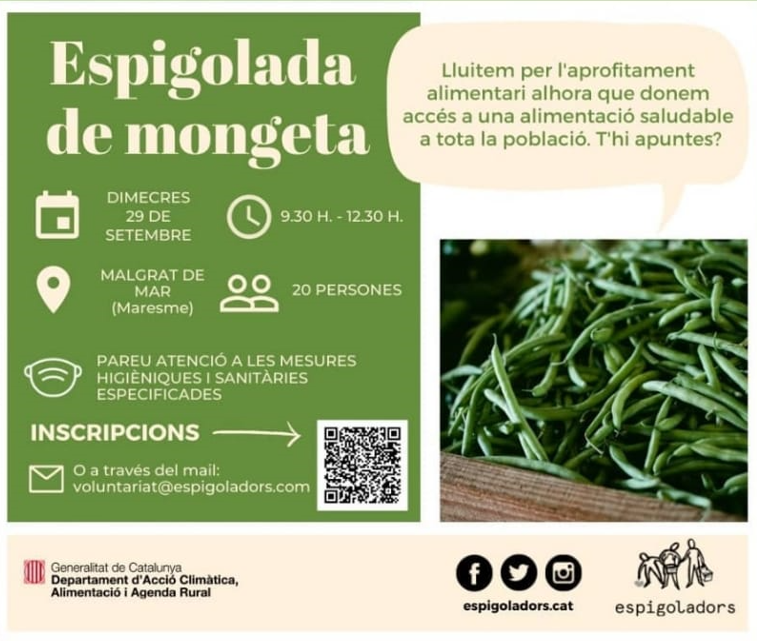 Espigolada de mongeta a Malgrat dimecres 29 de setembre a les 9.30 h. T'hi animes a venir al camp?