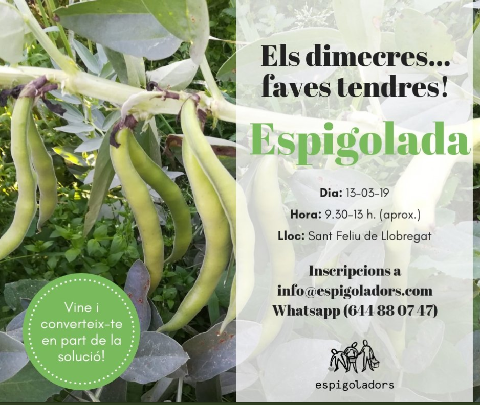 Ens acompanyes a #espigolar faves? Serà aquest dimecres al matí a #SantFeliudeLlobregat, i necessitem molta #gentbonica amb energia i ganes de treballar per l’aprofitament alimentari! #somespigoladors #voluntariatambiental #ParcAgrari