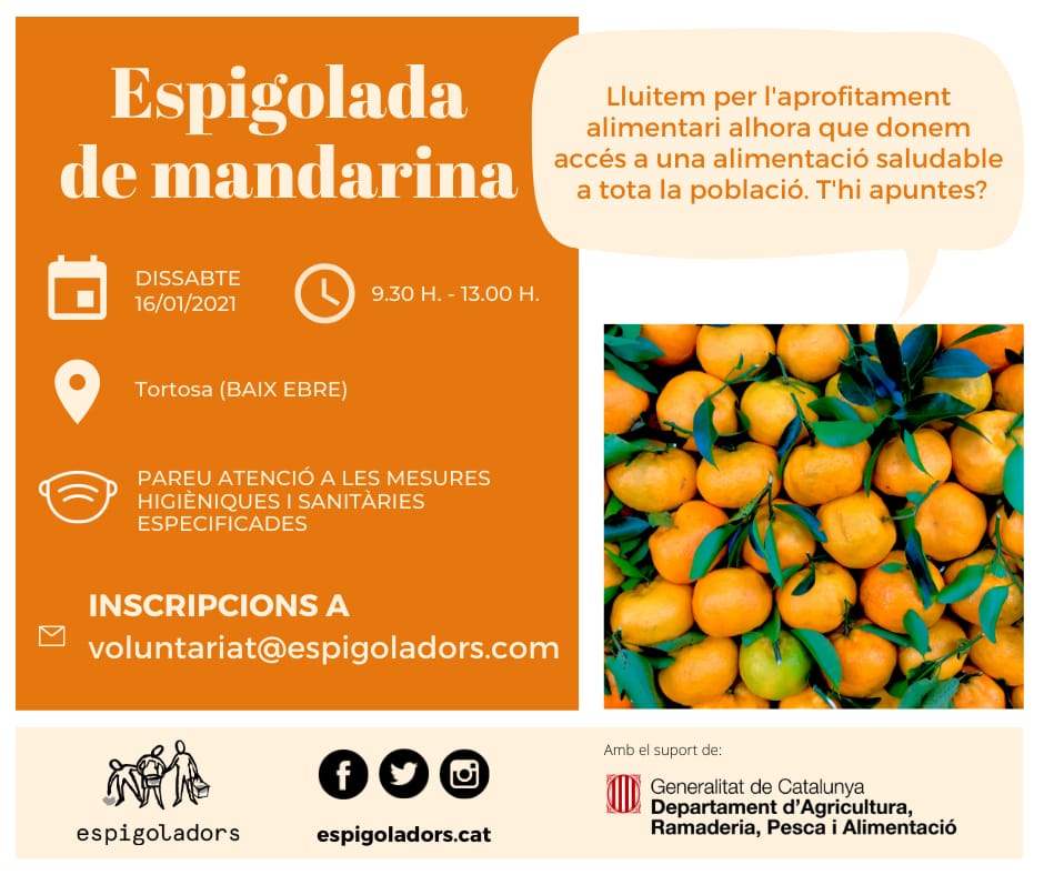 Aquest dissabte serem a Tortosa espigolant mandarines i busquem voluntàries i voluntaris