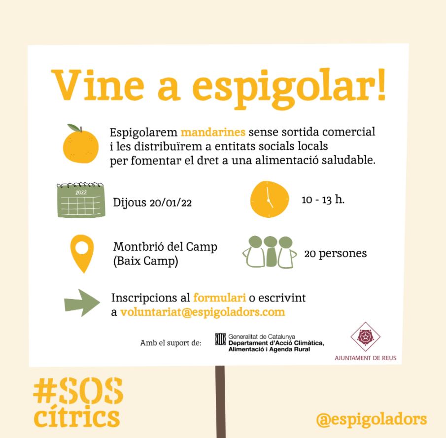 Qui s'apunta a rescatar mandarines a Montbrió del Camp? Dijous 20 de gener, vine a fer voluntariat ambiental contra el malbaratament alimentari amb Espigoladors