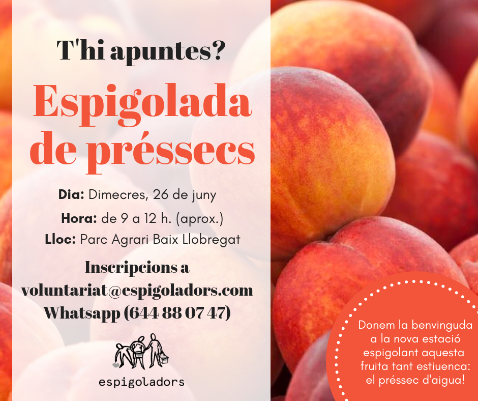 Demà farem una espigolada de préssecs en un camp de Sant Boi. Us animeu a venir?