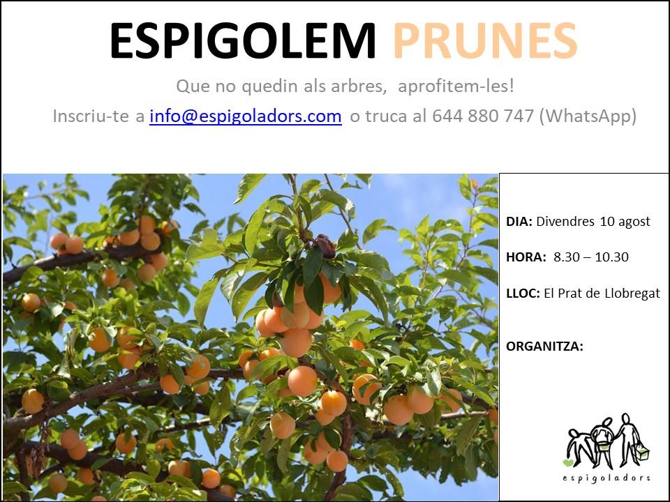 Serà aquest divendres a primera hora del matí, recordeu apuntar-vos al telèfon 644 880 747 o al mail info@espigoladors.com i sobretot COMPARTIU!
