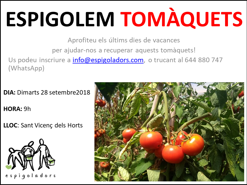 Per venir només cal que ens aviseu al 644 880 747 o a info@espigoladors.com i recordeu COMPARTIR!!!