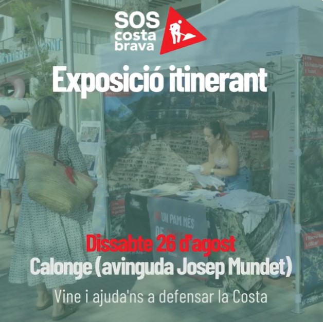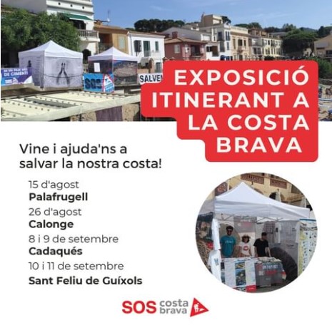 Aquest dissabte 26 d’agost s’instal·larà a a l’avinguda Josep Mundet de Sant Antoni de Calonge una exposició itinerant de SOSCostaBrava, que recull alguns dels casos que la federació ha denunciat en els darrers anys, alhora que explica com actua per tal defensar el territori.