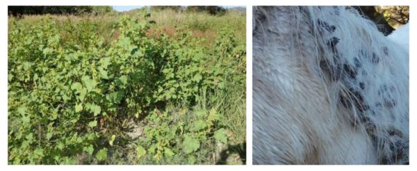 Una de les plantes exòtiques que més prolifera a l’àrea de Sebes és la bardana borda (Xanthium echinatum). Les llavors del Xanthium arriben amb les crescudes del riu i creixen enmig dels tancats de pastura. Es tracta d’una espècie especialment problemàtica perquè pot afectar directament als cavalls de la Camarga que duen a terme tasques de gestió als aiguamolls, ja que té unes llavors molt enganxoses, conegudes popularment com “catxurros”, que se’ls poden enganxar a la crinera i la cua.