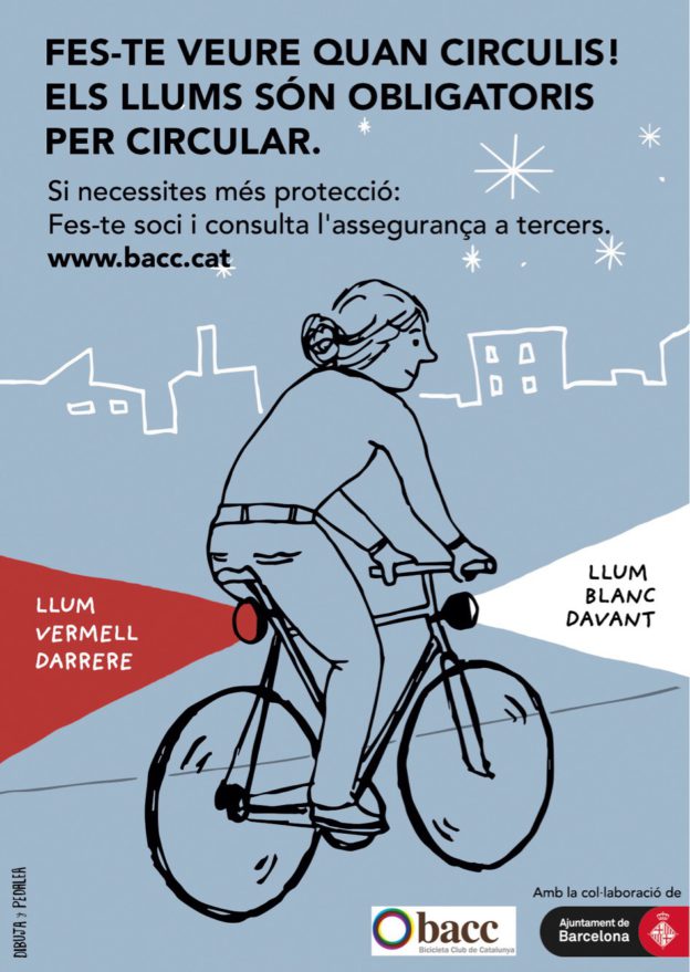 Campanya de conscienciació per fomentar la visibilitat dels ciclistes a la nit a diferents cruïlles de la ciutat. És una acció educativa que fomenta els bons hàbits d’una manera més amable i útil.