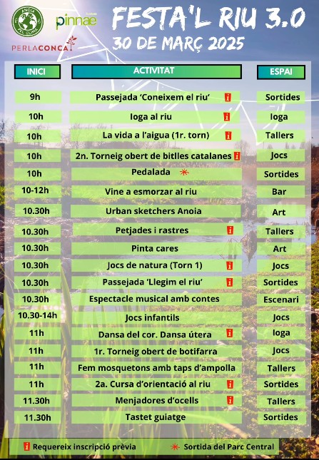 - 10:30h-12:00h Passejada “Llegim el riu”.