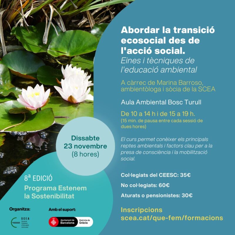 Aquesta formació serà a càrrec de Marina Barroso, ambientòloga i sòcia de la SCEA.