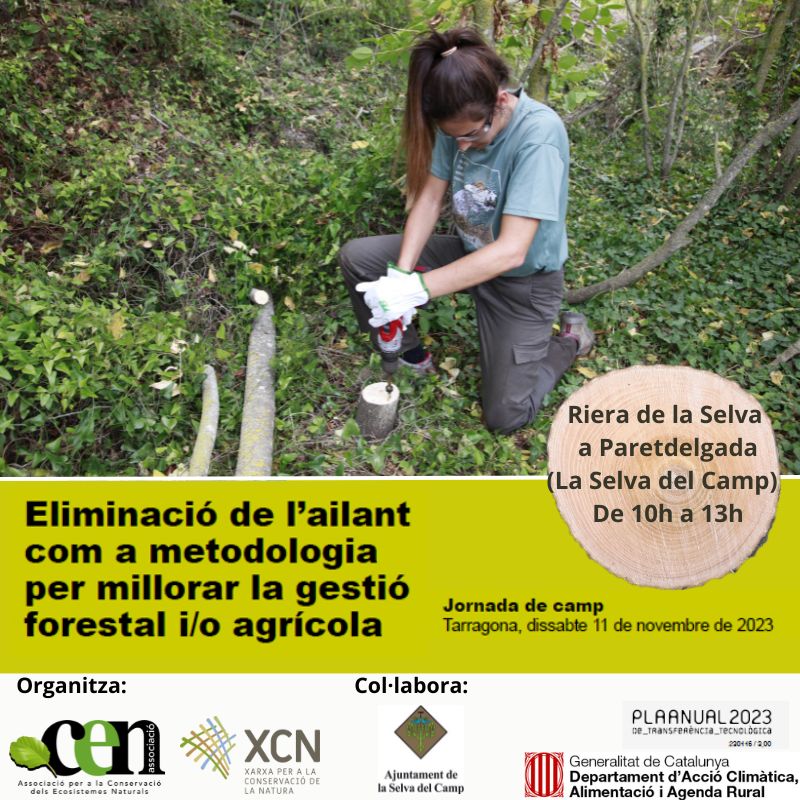L’ailant i altres arbres exòtics invasors perjudiquen els cultius i provoquen pèrdues econòmiques. L’objectiu d’aquesta jornada és donar a conèixer aquesta problemàtica i mostrar d’una manera pràctica la metodologia per tal que els mateixos perjudicats disposin de les eines per fer-hi front. Aquesta metodologia ha estat perfeccionada per l’associació CEN durant els darrers deu anys i inclou diverses recomanacions per garantir-ne la màxima eficiència i efectivitat.