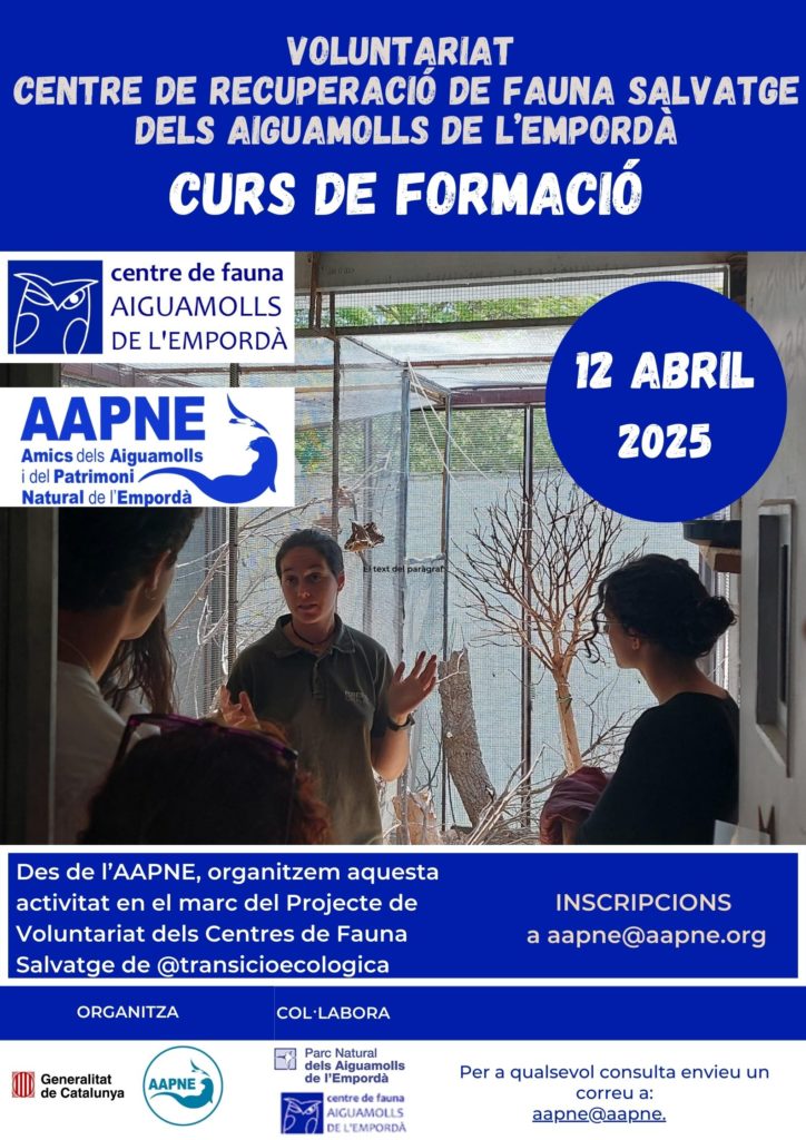 El proper dissabte 12 d’abril, organitzarem una sessió de formació al Centre de Fauna dels Aiguamolls de l’Empordà per conèixer la tasca i saber com contribuir.