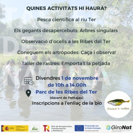 El dia 1 de novembre, de 10h a 14h, ens trobarem al Parc de les Ribes del Ter (davant del pavelló de Fontajau) per descobrir la fauna i la flora, jugar i aprendre.