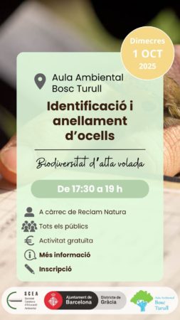 Si t’apassionen els ocells i en vols saber més, en aquesta jornada identificarem i anellarem algunes de les espècies que viuen a Barcelona o hi fan escala en les seves migracions estacionals.