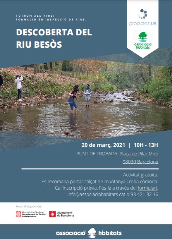 ! ATENCIÓ: PLACES EXHAURIDES! Dissabte 20 de març. Descoberta del riu Besòs a Barcelona (Barcelonès). La trobada serà a les 10h a la Plaça de Pilar Miró, 08030 Barcelona. Consulteu el cartell de l’activitat.