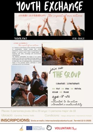 - Iscripcions: escriure a internacional@voluntataris.cat fins al 12 de maig 2025.