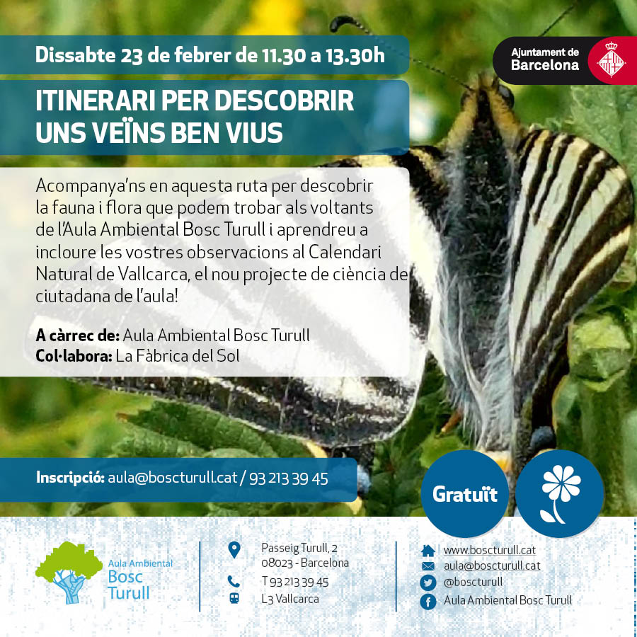 Acompanya’ns en aquesta ruta per descobrir la fauna i flora que podem trobar als voltants de l’Aula Ambiental Bosc Turull i aprendreu a incloure les vostres observacions al Calendari Natural de Vallcarca,el nou projecte de ciència de ciutadania a l’aula!