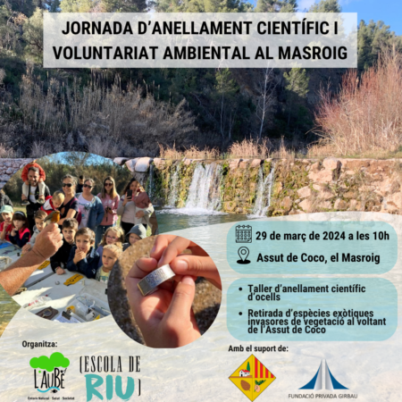 Aquest divendres 29 de març durem a terme una jornada d’anellament científic i voluntariat ambiental al Masroig.