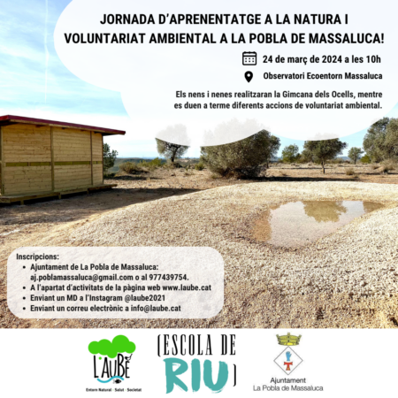Aquest diumenge dia 24 de març realitzarem una jornada d'aprenentatge a la natura i voluntariat ambiental a l'Ecoentorn de la Pobla de Massaluca.