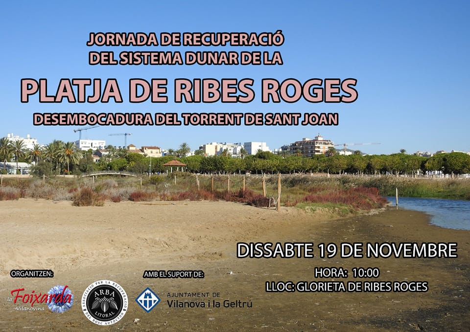 Dissabte 19 de novembre les companyes de La Foixarda i Arba Litoral farem unes actuacions de recuperació dunar a la Platja de Ribes Roges de Vilanova i la Geltrú.