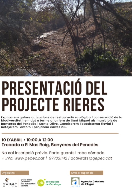 En aquesta activitat explicarem quines actuacions de restauració ecològica i conservació de la biodiversitat hem dut a terme a la riera de Sant Miquel als municipis de Banyeres del Penedès i Santa Oliva