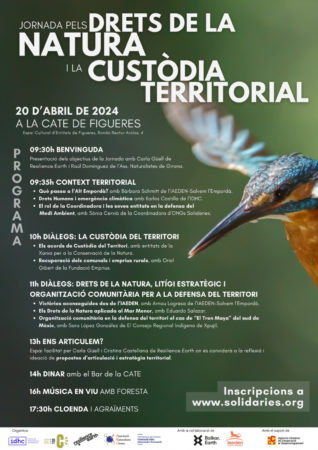 El proper dissabte, 20 d’abril, se celebra a La Cate de Figueres la Jornada pel Drets de la Natura i la Custòria Territorial, una trobada per posar en comú l’aprenentatge de pràctiques estratègiques i organització comunitària en la defensa ambiental.