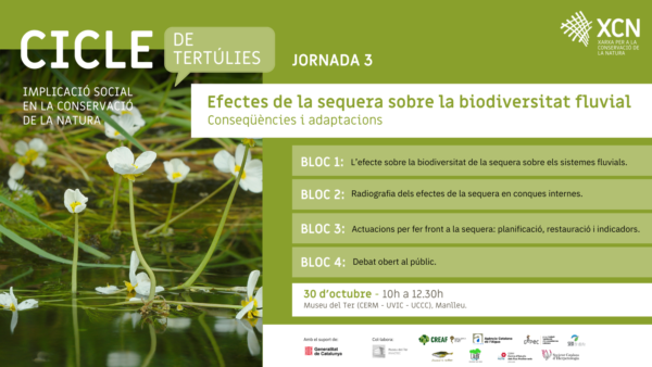 La Xarxa per a la Conservació de la Natura ha organitzat un cicle de tres tertúlies per debatre els efectes de la sequera sobre la biodiversitat, explorar estratègies d’adaptació i mitigació i analitzar com la ciència ciutadana està cobrant rellevància per l’avaluació de l’estat de la biodiversitat a Catalunya.