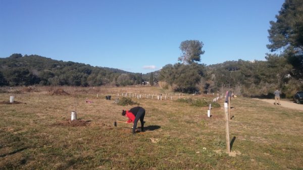 Tasques de manteniment de la plantació de roures, alzines, freixes, i murtes efectuada l'hivern passat per a recuperar els hàbitats d'interès del Baix Foix.