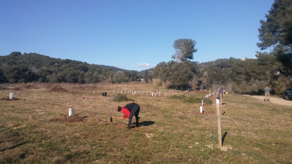 Tasques de manteniment de la plantació de roures, alzines, freixes, i murtes efectuada l'hivern passat per a recuperar els hàbitats d'interès del Baix Foix.