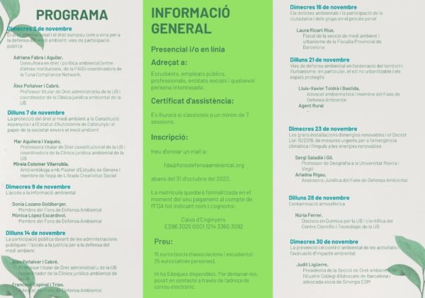 Per a més informació i inscripcions escriure a fda@fonsdefensamabiental.org