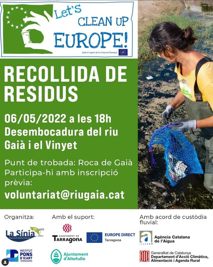 Podeu fer la vostra inscripció per a la recollida de residus del dia 6 de maig a les 18h a El Vinyet i a la desembocadura del riu Gaià a través d’aquest enllaç