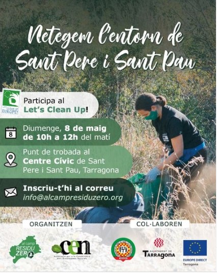 Aquest diumenge 8 de maig de 10 a 12 h fem una recollida de residus amb voluntariat a l’entorn de St. Pere i St. Pau, Tarragona.