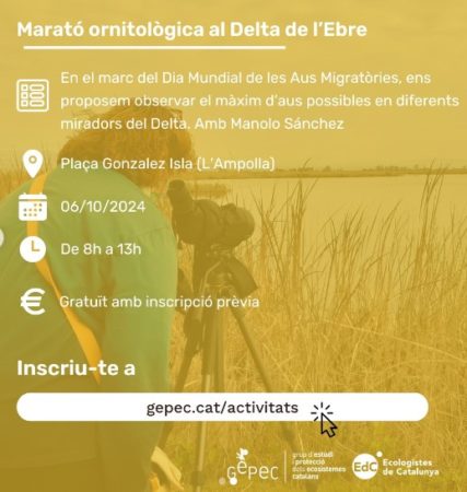 Gratuït amb inscripció prèvia: https://gepec.cat/esdeveniments/marato-ornitologica-al-delta-de-lebre/